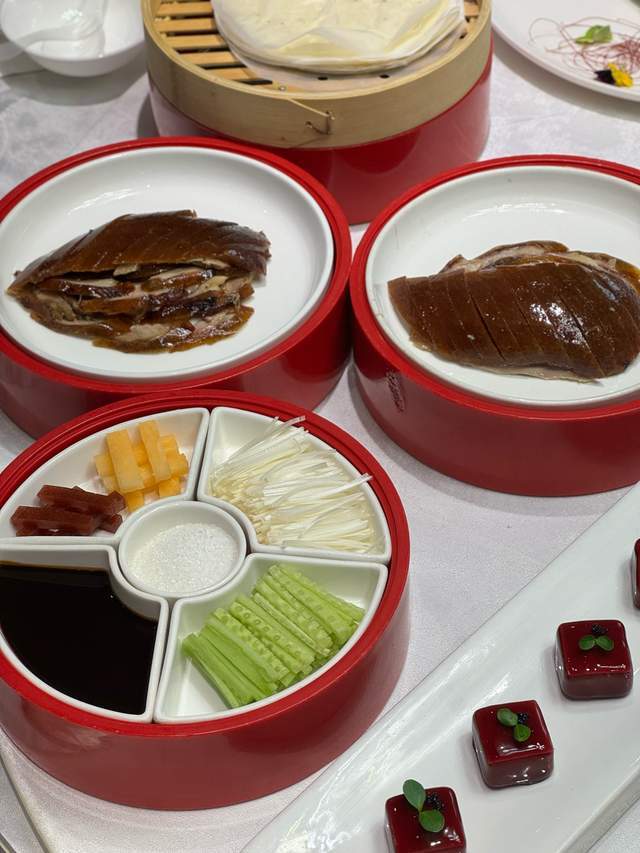 丝路味道迷你烤鸭卷:现点现切,烤鸭皮烤得金黄酥脆,鸭肉鲜嫩多汁 ,搭配葱丝、黄瓜丝和特制酱料,用薄饼一卷,一口下去超满足,完全不腻,吃了还想吃!