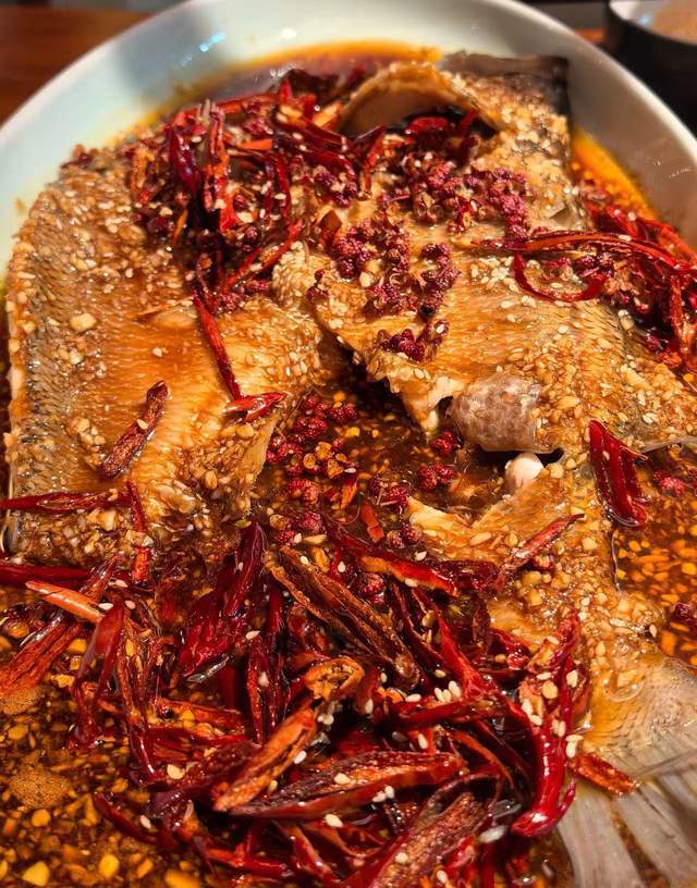 油泼蒜爆鲈鱼:辣椒丝、蒜泥均匀撒在鱼上,经油泼激发出香味,鱼肉鲜嫩无腥味,搭配的西安头条油条,比手臂还粗,泡入鱼汤中,外酥里嫩,鲜香四溢。