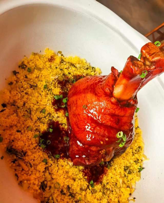 美食推荐: 霸王肘子,猪前肘经过4小时慢炖,醇香软烂,筷子轻轻一戳就骨肉分离,肘子皮软糯Q弹,肥而不腻,搭配陕北黄贡米、酸菜和肉丝,香得很下饭。