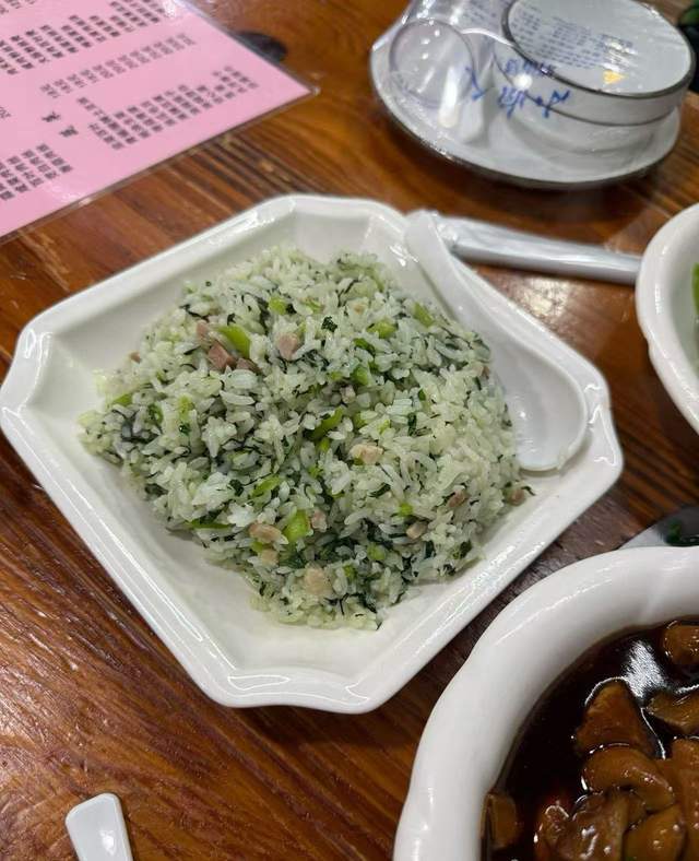 咸肉菜饭:这是一道充满了家的味道的主食,每一勺都能挖到咸香的肉片和翠绿的青菜,米饭吸收了肉香和菜香,口感丰富,香而不腻。