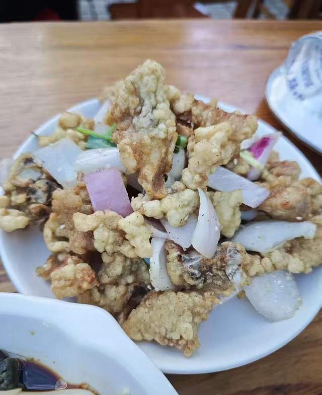 美食推荐:椒盐排条,招牌菜,必点!排条炸得金黄酥脆,面衣很薄,里面的肉鲜嫩多汁,咬上一口,满满的幸福感!趁热吃口感最佳。