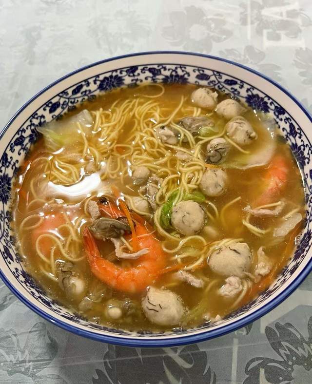 泉州海鲜卤面:汤头鲜到眉毛掉!虾蟹等海鲜在汤里“开派对”,面条吸满海味,口感爽滑浓郁,里面用料丰富,很多人必点的美味。